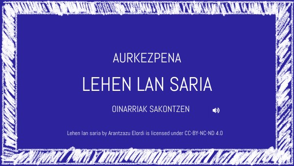 Lehen lan saria by Arantzazu Elordi is licensed under CC-BY-NC-ND 4.0
