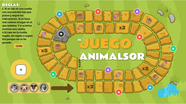 1. Si se cae en una casilla con una estrella hay que pulsar y seguir las indicaciones. Si se hace mal vuelves al lugar en el que estabas. Y si aciertas avanzas una casilla. 2.Si caes en la casilla regalo, de regalo a regalo tiro porque me lo he ganado.
