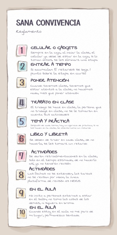 No invito a personas externas a estar en el salón, no tomo las cosas de los demás, ni siquiera en broma