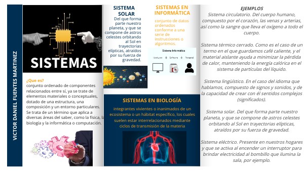 ¿Que es? conjunto ordenado de componentes relacionados entre sí, ya se trate de elementos materiales o conceptuales, dotado de una estructura, una composición y un entorno particulares. Se trata de un término que aplica a diversas áreas del saber, como la física, la biología y la informática o computación.