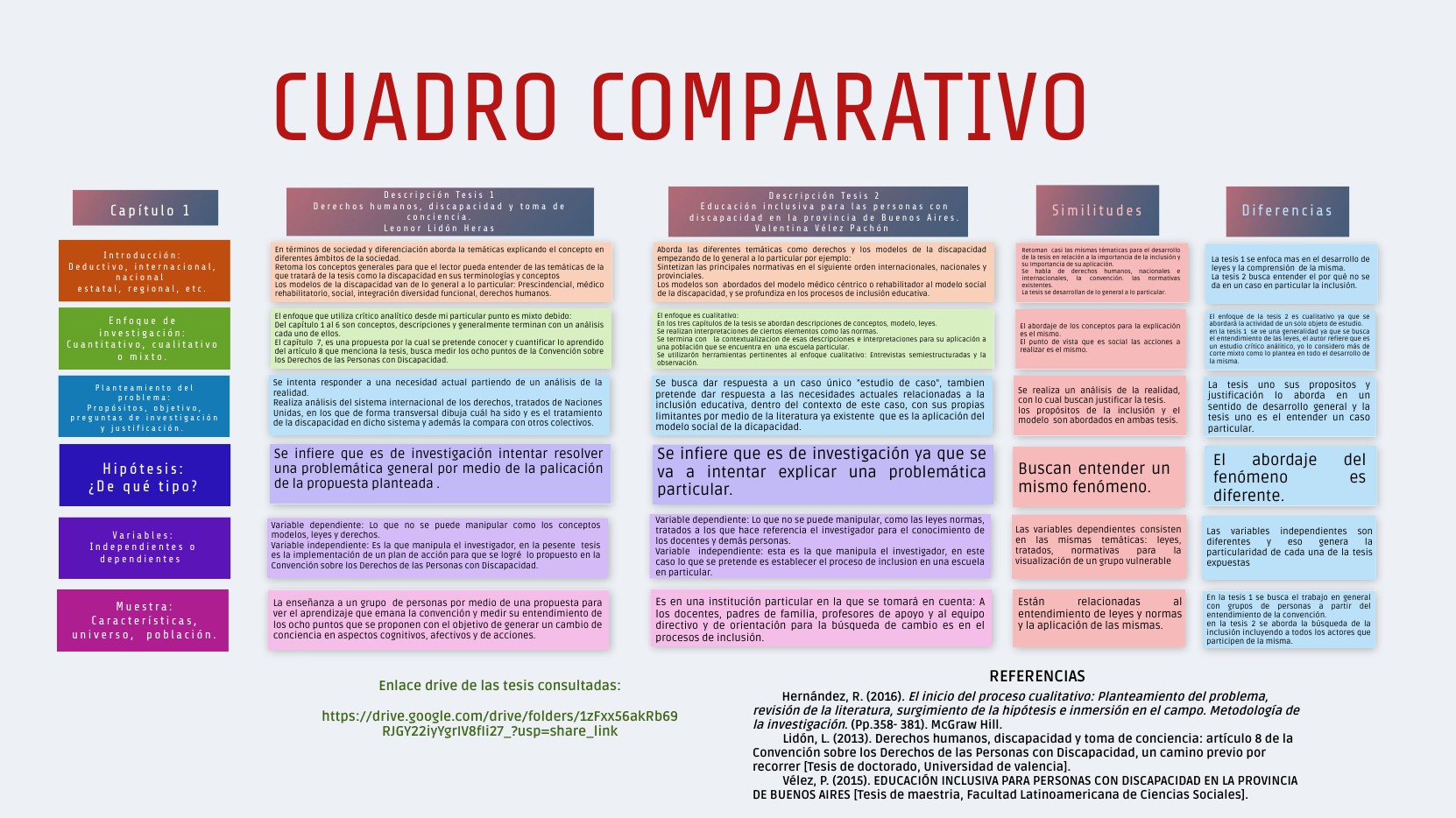 Retoman casi las mismas tématicas para el desarrollo de la tesis en relación a la importancia de la inclusión y su Importancia de su aplicación.Se habla de derechos humanos, nacionales e internacionales, la convención. las normativas existentes. La tesis se desarrollan de lo general a lo particular.