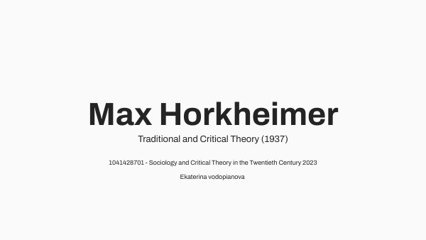 Max Horkheimer. Traditional and Critical Theory (1937)