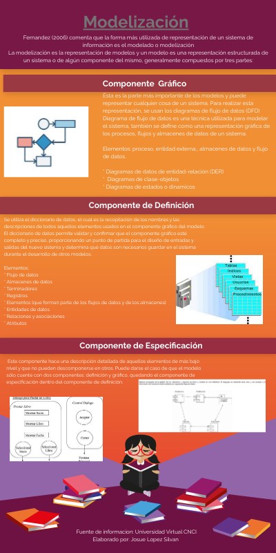 Fernandez (2006) comenta que la forma más utilizada de representación de un sistema de información es el modelado o modelización La modelización es la representación de modelos y un modelo es una representación estructurada de un sistema o de algún componente del mismo, generalmente compuestos por tres partes: