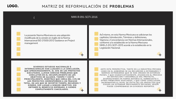 La presente Norma Mexicana es una adopción modificada de la versión en inglés de la Norma Internacional ISO 21500:2012 Guidance on Project management