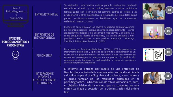Se obtendra información valiosa para la evaluación mediante entrevistas al niño y sus padres,maestros u otros individuos familiarizados con el primero (el término padres se refiere a los progenitores u otros proveedores de cuidados del niño, tales como padres sustitutos,abuelos o familiares que se encuentren criándolo). Sattler J, (2010)