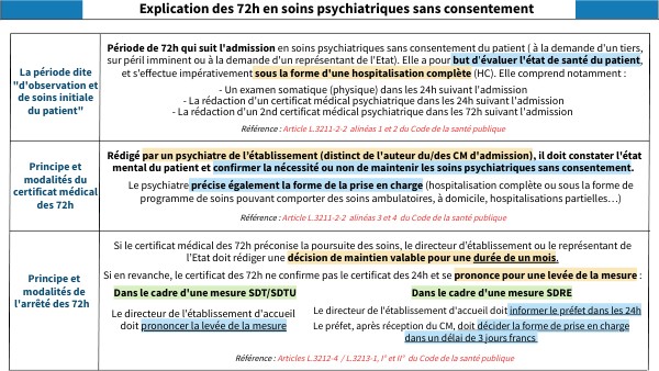 Explication des 72h en soins psychiatriques sans consentement