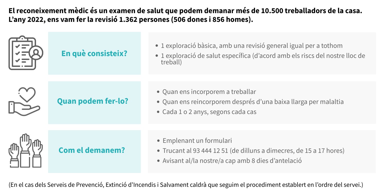 El reconeixement mèdic és un examen de salut que podem demanar més de 10.500 treballadors de la casa. L’any 2022, ens vam fer la revisió 1.362 persones (506 dones i 856 homes).