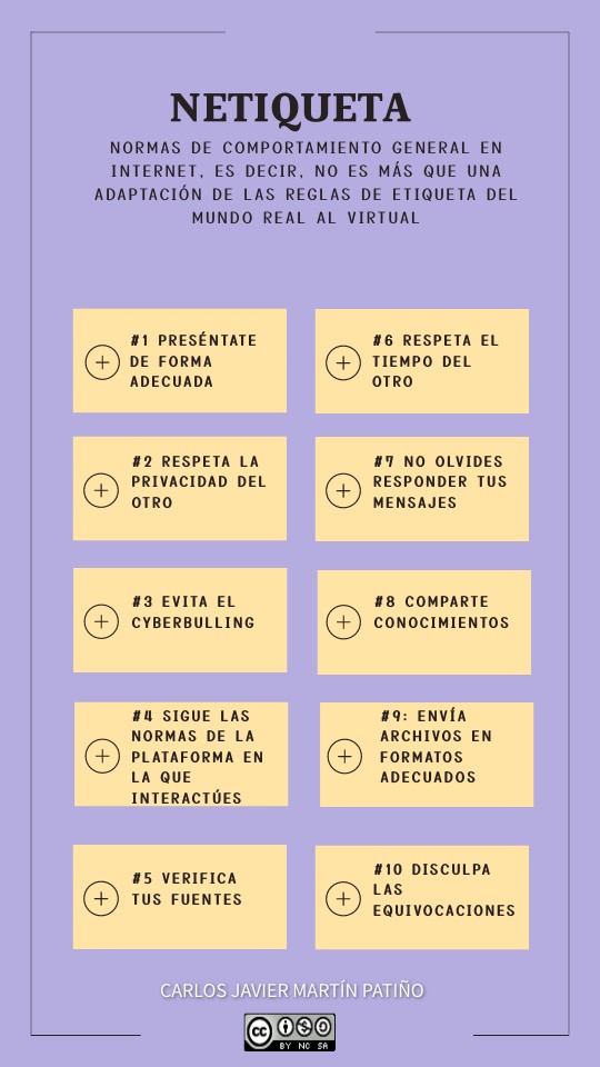 normas de comportamiento general en internet, es decir, no es más que una adaptación de las reglas de etiqueta del mundo real al virtual