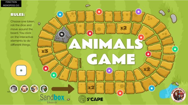 Choose one token, roll the dice and move around the board. You click on the interactive elements to do different things.