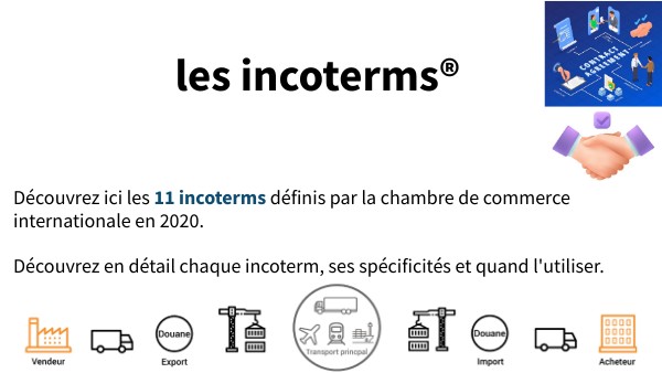 Découvrez ici les 11 incoterms définis par la chambre de commerce internationale en 2020. Découvrez en détail chaque incoterm, ses spécificités et quand l'utiliser.