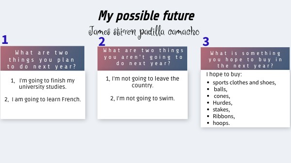 1, I'm going to finish my university studies.2, I am going to learn French.
