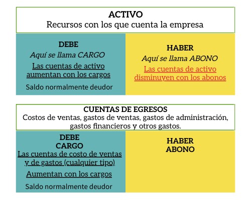 Las cuentas de activo aumentan con los cargos