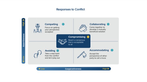 Compromise happens when both sides express their perspectives and work toward a middle ground. Rather than trying to "win" outright, the focus is on understanding each other and finding a balanced resolution. In this case, both sides may gain something but also give up something, making it a partial win for everyone.