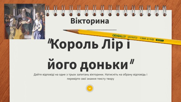 Дайте відповіді на одне з трьох запитань вікторини. Натисніть на обрану відповідь і перевірте свої знання тексту твору