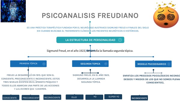 FREUD la desarrolló en 1915. Que son el consiente, preconsciente e inconsciente, estos tres niveles existen en el aparato psíquico y todos ellos abarcan una parte de las acciones y decisiones que tomamos.