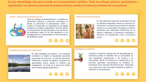 Es una metodología educativa basada en el pensamiento científico. Tiene un enfoque práctico, participativo y significativo. Los alumnos aprenden de manera efectiva cuando se involucran activamente en proyectos.