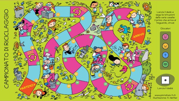 Lancia il dado e segui le istruzioni delle varie caselle: il primo che arriva al traguardo, vince!