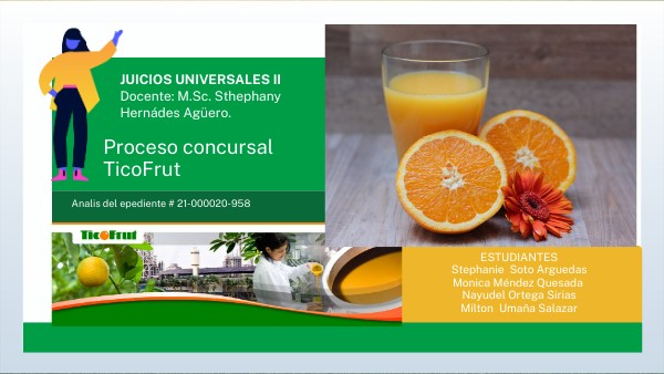 Realizaremos una revisión al expediente del proceso concursal DE CONVENIO PREVENTIVO.Presentado en: Juzgado Concursal San José Promovido por: TicoFrut, y otras, ( 5 Sociedades panameñas, con domicilio en Panamá) Cédula jurídica numero: 3-101-625660 Expediente numero: 21-000020-958- El proceso fue presentado como un convenio preventivo y subsidiariamente, en el año 2021, anterior la ley 9957. PRESIDENTE: Roberto Aragon Sáenz, Ingeniero Agronomo.