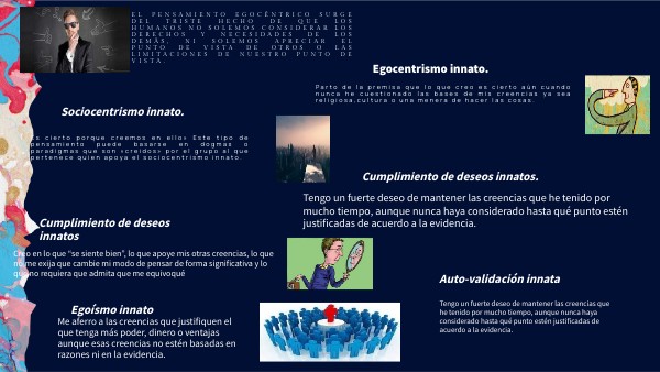 - Es cierto porque creemos en ello» Este tipo de pensamiento puede basarse en dogmas o paradigmas que son «creidos» por el grupo al que pertenece quien apoya el sociocentrismo innato.