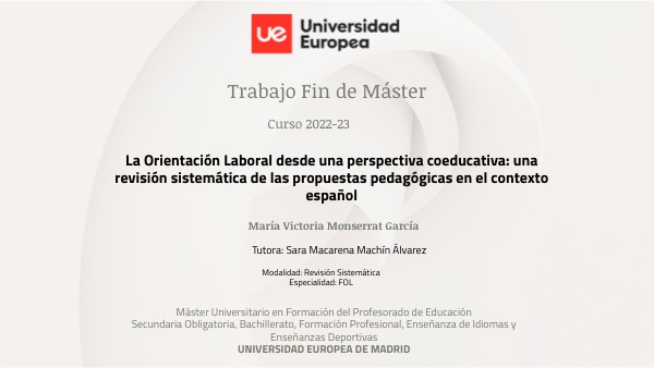 Máster Universitario en Formación del Profesorado de Educación Secundaria Obligatoria, Bachillerato, Formación Profesional, Enseñanza de Idiomas y Enseñanzas Deportivas UNIVERSIDAD EUROPEA DE MADRID
