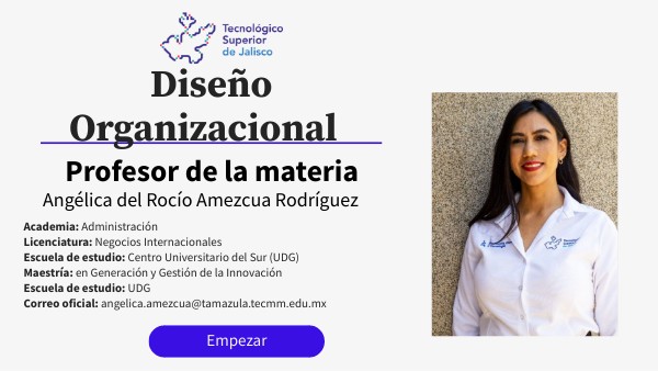 Esta asignatura aporta al perfil profesional del Ingeniero en Administración e Ingeniero en Gestión Empresarial, las herramientas básicas para el diseño de estructuras organizacionales, bajo un enfoque holístico que permita a la organización responder a los cambios del entorno global. El diseño organizacional es importante para el desarrollo de las funciones de una empresa, permitiendo la coherencia entre sus componentes y el reconocimiento de sus funcionamiento como sistema, por lo que es necesario enfatizar en las decisiones de carácter estratégico que demanda la definición y redefinición de las estructuras de una organización; así mismo es importante tomarse como un proceso interactivo de diagnosticar y emprender una acción hacia las conductas de liderazgo y prácticas de recursos humanos que permiten que los miembros de la organización se desarrollen y utilicen sus talentos en una forma tan plena como sea posible, hacia las metas de desarrollo individual y del éxito de la organización.