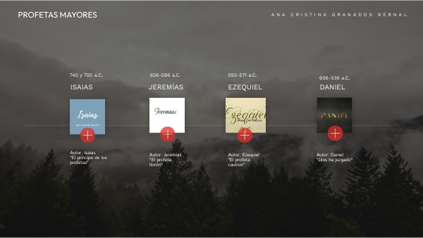 Reyes: Isaías profetizó durante los reinados de Uzías, Jotam, Acaz y Ezequías Profecías mesianicas: - Él cargo nuestros pecados Is 56:4, 53:6 - Es el salvador Is 53:5 - Es nuestro intercesor Is 53:12 - Libertador Is 42:7 Anuncios de los que hablaba: - Advertencía del juicio - Mensajes de salvación y consuelo - Profecias a Judá y Jerusalén - Sentencias en contra naciones extranjeras