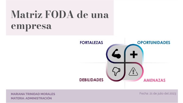 FODA significa Fortalezas, Oportunidades, Debilidades y amenazas. Esto es algo fundamental para el crecimiento de todas las empresas ya que este ofrece una perspectiva muy general de la empresa y de esta manera poder analizar más a detalle. Hablaré sobre la empresa en la que trabajo y la analizaré en base a la FODA.