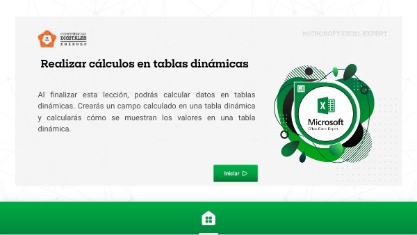 Al finalizar esta lección, podrás calcular datos en tablas dinámicas. Crearás un campo calculado en una tabla dinámica y calcularás cómo se muestran los valores en una tabla dinámica.