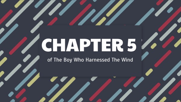 TThe chapter begins with us seeing how William learns the difference between AC and DC. We see that he is interested, but needs more education than his primary schooling to know more. We see that the Malawian government disagrees with William saying that electricity is a common need.The topic of food and starvation come into the picture in chapter 5, and the Kamkwamba family begin saving up and rationing their food.Outside, the situation is even more desperate and people and willing to eat anything they can find.