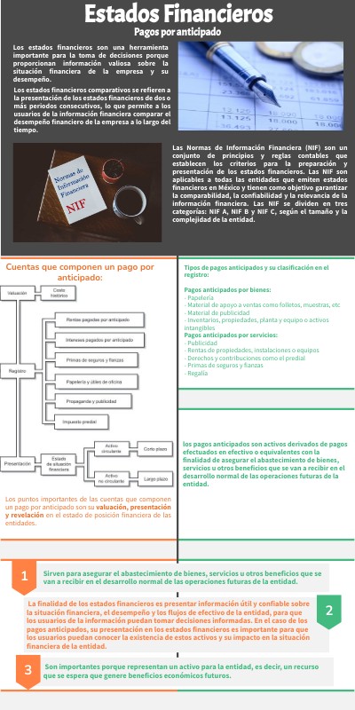 Los puntos importantes de las cuentas que componen un pago por anticipado son su valuación, presentación y revelación en el estado de posición financiera de las entidades.