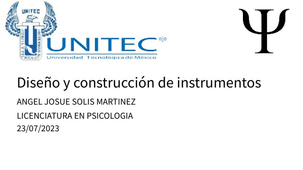 UNA EVALUACION CONFIABLE Y VALIDA ES FUNDAMENTAL PARA UN BUEN ANALISIS PSICOLOGICO, POR ESTE MOTIVO FUERON CREADO LOS INSTRUMENTOS DE MEDICION YA QUE ESTOS AL ESTAR PROBADOS NOS AYUDAN A EVITAR ERRORS DE TODO TIPO. ES UN PUNTO INDISPENSABLE SE PRESENTA UN MAPA MENTAL EN DONDE ANALIZAREMOS EL DISEÑO Y CONSTRUCCION DE LOS INSTRUMENTOS DE MEDICION DE PSICOLOGIA. SE EXPLICAN LOS PASOS, OBJETIVOS, CARACTERISTICAS, TIPOS DE INSTRUMENTOS DE MEDICION ASI COMO SU CLASIFICACION