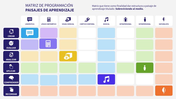 Matriz que tiene como finalidad dar estructura a paisaje de aprendizaje titulado: Sobreviviendo al medio.