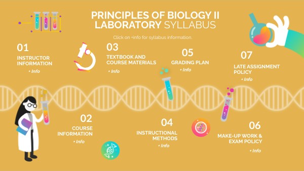 A. Course name, number, and credit hours: Principles of Biology II, Laboratory BIO 1121 1 credit hour B. Section number: VA1 C. Class meeting time and location: VIRTUAL (8/21/23-12/1/23) D. Pre-/co-requisite courses: Pre-requisite is BIO 1111 Co-requisite is BIO 1123 E. Course description: A laboratory course for non-science majors that contains experiments and exercises that reinforce the principles introduced in BIO 1123 Principles of Biology II, Lecture. F. Student Learning Outcomes: (Curriculum Alignment 2017) Develop laboratory skills that allow a student to recognize and observe the concepts listed in BIO 1123, as well as develop the ability to analyze experimental data. G. Withdrawal Dates: October 4, 2023 - November 13, 2023