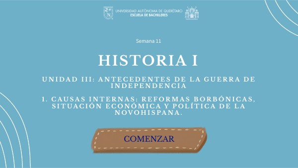 Unidad III: Antecedentes de la Guerra de Independencia 1. Causas internas: Reformas Borbónicas, situación económica y política de la novohispana.