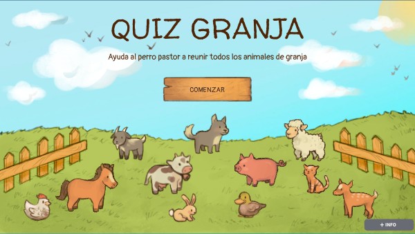 Juego de preguntas sobre que animales viven en la granja. Pensado para infantil o primer ciclo de primaria.