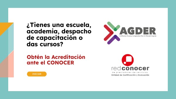 - Te guiamos en el proceso de certificación en el Consejo Nacional de Normalización y Certificación de Competencias Laborales (CONOCER).