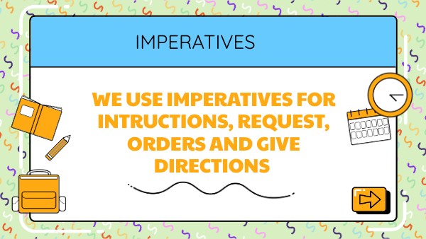 WE USE IMPERATIVES FOR INTRUCTIONS, REQUEST, ORDERS AND GIVE DIRECTIONS