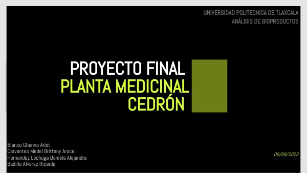 - Elington Antonio; Haydelba D´Armas. (2015). Análisis farmacognóstico de los órganos botánicos del cedrón (Lippia citriodora), con poder antimicrobial y letal, cultivada en la republica de Ecuador. Universidad técnica de Machala. Unidad académica de ciencias químicas y de la salud. http://repositorio.utmachala.edu.ec/bitstream/48000/2797/2/CD0000-11-TRABAJO%20COMPLETO.pdf