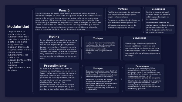 Acoplamiento no deseado: Si los procedimientos están fuertemente acoplados entre sí, los cambios en uno pueden tener un impacto inesperado en otros procedimientos y en el comportamiento general del programa. Dificultad en el escalado: Si el programa crece significativamente en tamaño y complejidad, la modularidad por procedimiento puede volverse difícil de mantener y gestionar.