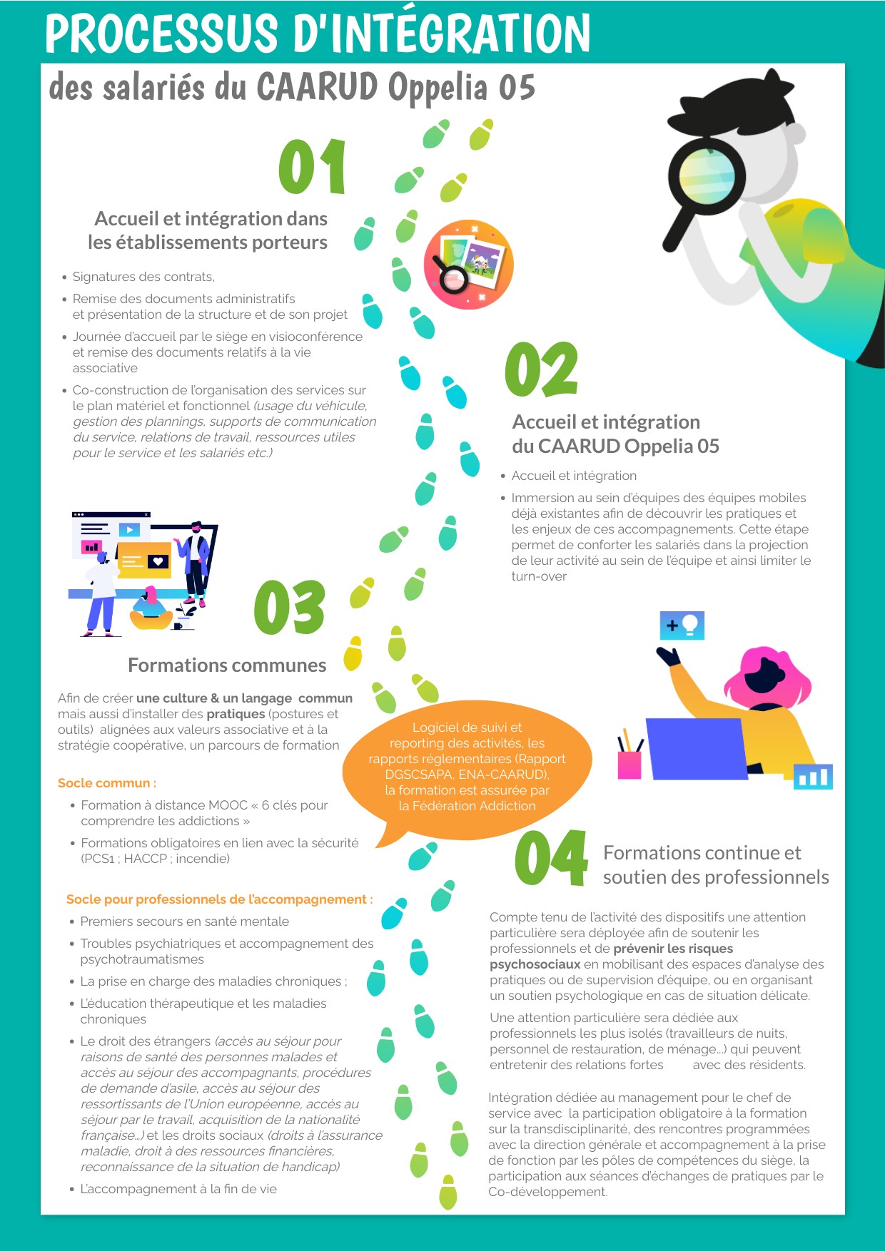 - Immersion au sein d’équipes des équipes mobiles déjà existantes afin de découvrir les pratiques et les enjeux de ces accompagnements. Cette étape permet de conforter les salariés dans la projection de leur activité au sein de l’équipe et ainsi limiter le turn-over