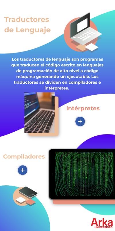 Los traductores de lenguaje son programas que traducen el código escrito en lenguajes de programación de alto nivel a código máquina generando un ejecutable. Los traductores se dividen en compiladores e intérpretes.