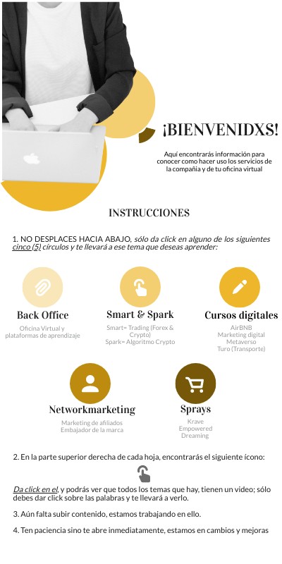 1. NO DESPLACES HACIA ABAJO, sólo da click en alguno de los siguientes cinco (5) círculos y te llevará a ese tema que deseas aprender:
