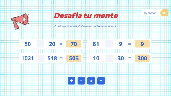 Arrastra las cifras/símbolos/operaciones a la posición correcta