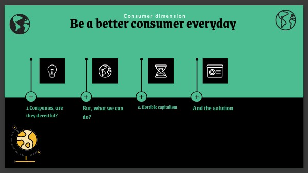 As a solution, it may sound a little strange but sustainable capitalism is the way that as consumers we can create that awareness that in our world we still work, a clear example is how Nike has left out child labor or how Unilever is starting to work with palm oil, not everything is lost, Today we can already see how companies are looking for the best service and transparency in their public and gradually we will continue looking for a better world.