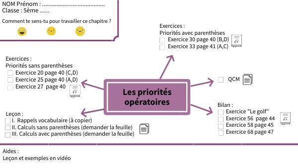 Leçon : I. Rappels vocabulaire (à copier) II. Calculs sans parenthèses (demander la feuille) III. Calculs avec parenthèses (demander la feuille)