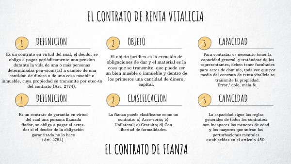 Es un contrato en virtud del cual, el deudor se obliga a pagar periódicamente una pensión durante la vida de una o más personas determinadas pen-sionista) a cambio de una cantidad de dinero o de una cosa mueble o inmueble, cuya propiedad se transmite por etec-to del contrato (Art. 2774).