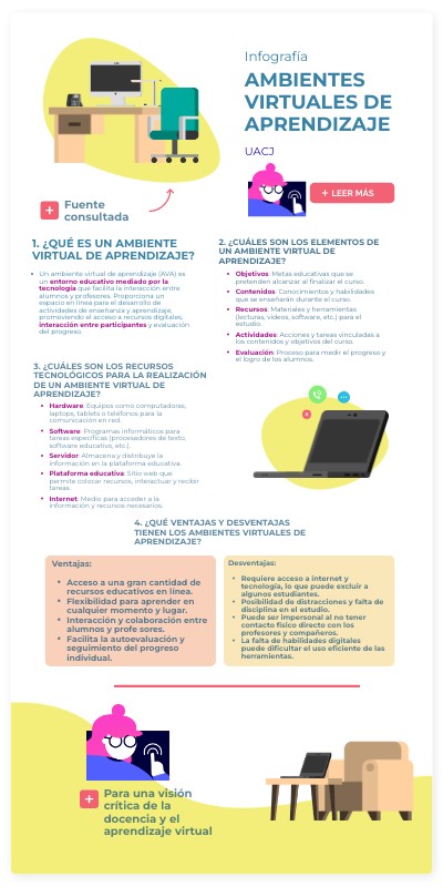 - Un ambiente virtual de aprendizaje (AVA) es un entorno educativo mediado por la tecnología que facilita la interacción entre alumnos y profesores. Proporciona un espacio en línea para el desarrollo de actividades de enseñanza y aprendizaje, promoviendo el acceso a recursos digitales, interacción entre participantes y evaluación del progreso.