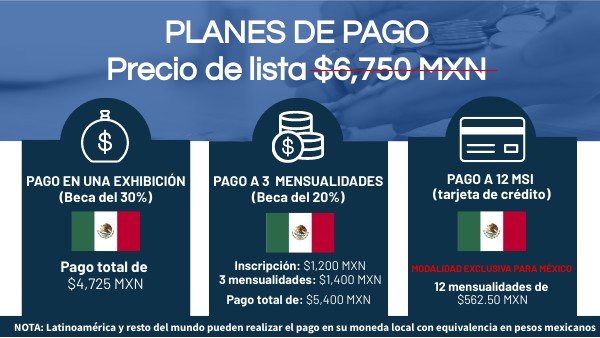 NOTA: Latinoamérica y resto del mundo pueden realizar el pago en su moneda local con equivalencia en pesos mexicanos