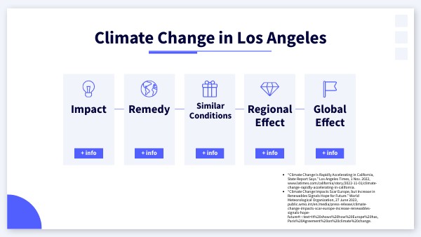 Los Angeles has expereienced wildfires,drought, extreme heat, and other effects of climate change which are still rapidly accelarting. Average air temperatures in California are increasing by 2.5 degrees since 1895 and faster since 1980.