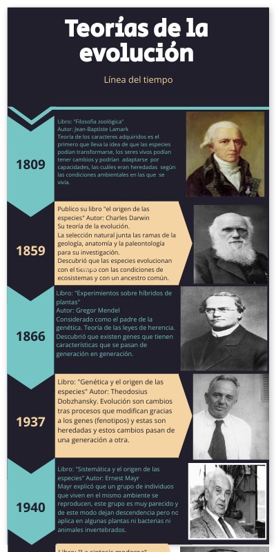 Libro: "Filosofía zoológica"Autor: Jean-Baptiste Lamark Teoría de los caracteres adquiridos es el primero que lleva la idea de que las especies podían transformarse, los seres vivos podían tener cambios y podrían adaptarse por capacidades, las cuáles eran heredadas según las condiciones ambientales en las que se vivía.